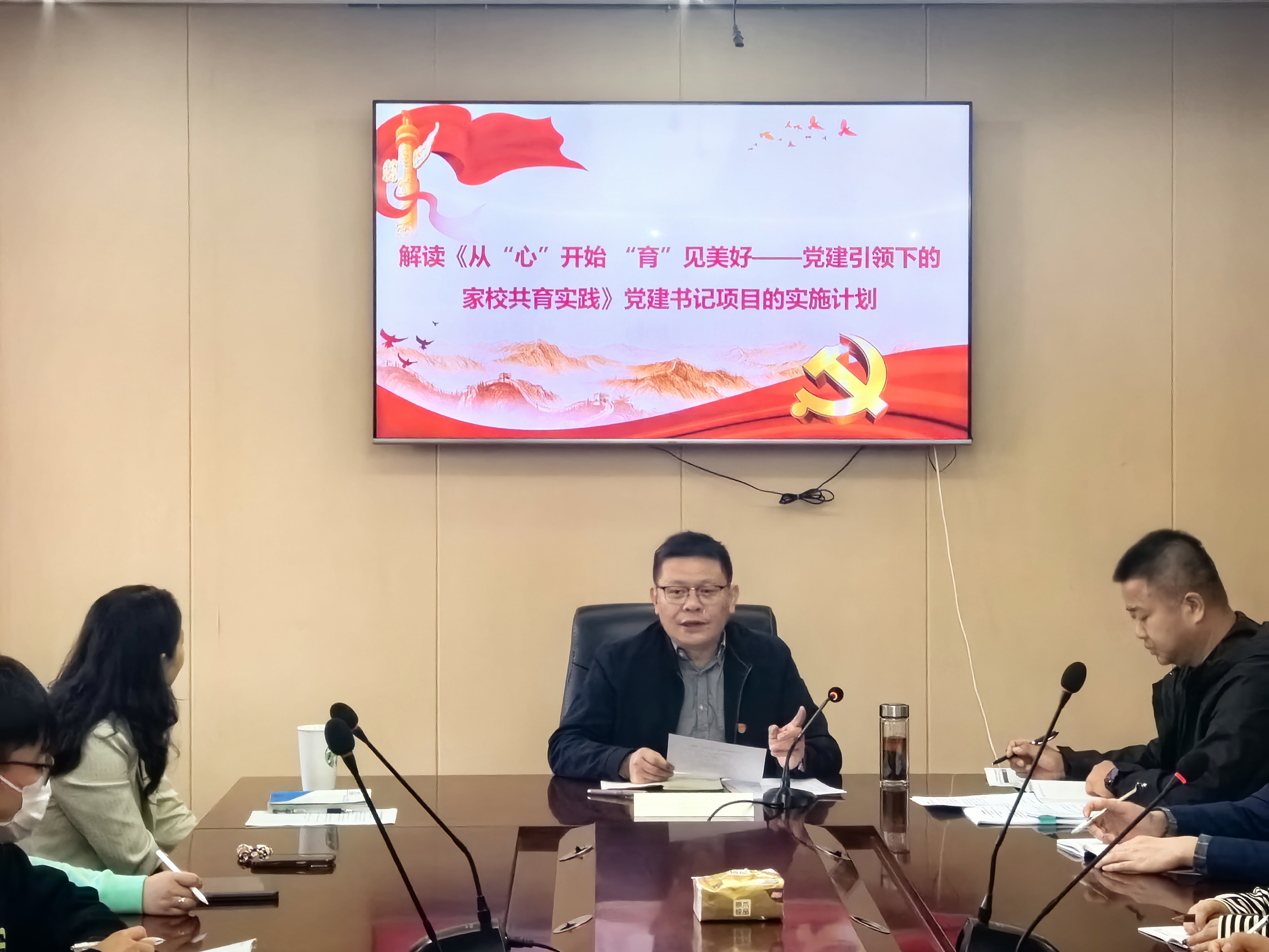 随后,毛建青书记解读《从“心”开始 “育”见美好——党建引领下的家校共育实践》党建书记项目的实施计划,进一步加强党的先进性教育,充分发挥党员先锋模范带头作用,推动家校共育,助推教育的高质量发展及学生的全面发展。