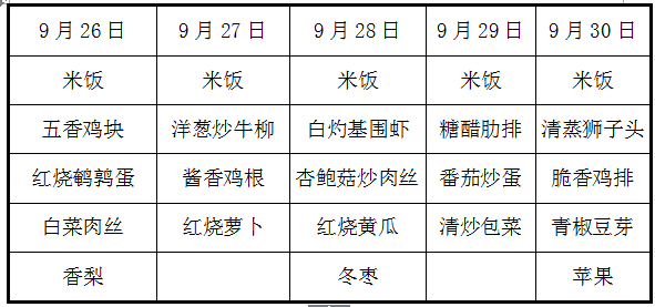 苏州市吴中区独墅湖实验小学9月26-9月30日学生菜单